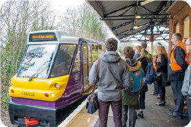 passengers utilising a tram powered by on-board energy